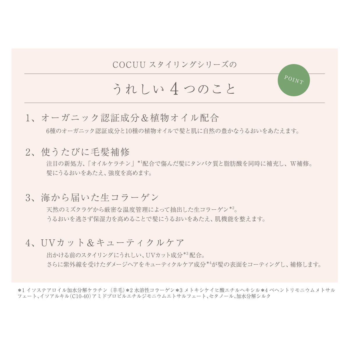 補修成分を配合し、髪本来の美しさをかなえるオーガニック成分配合のナチュラルオイルが、やわらかな質感へと導きます。
