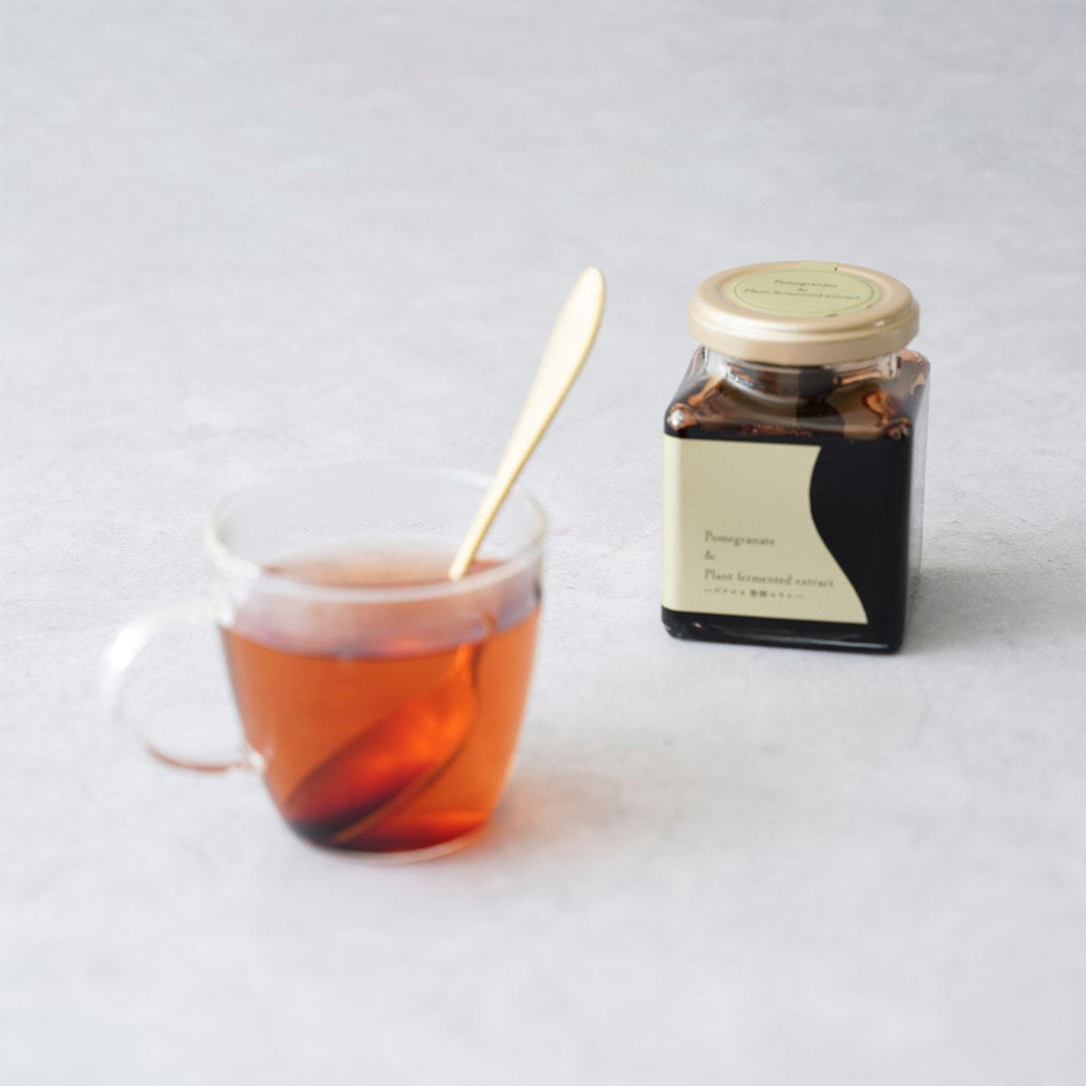 ザクロペースト(国内製造)、植物発酵エキス(黒糖、キャベツ、大根、その他)、(一部にくるみ・アーモンド・オレンジ・カシューナッツ・キウイフルーツ・ごま・バナナ・やまいも・りんごを含む)